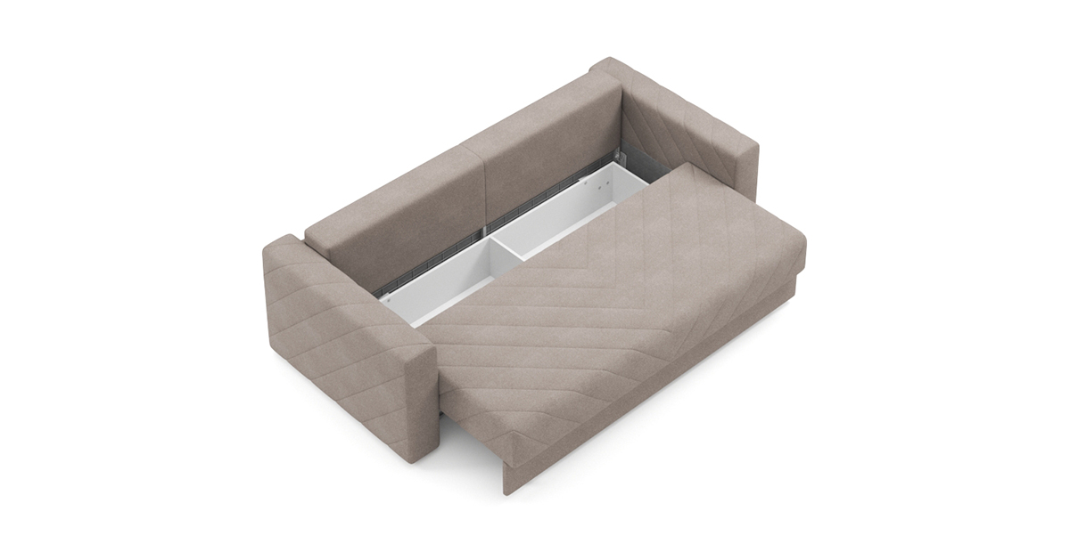 Вместительный бельевой ящик, расположенный под сидением, станет незаменимым помощником в организации пространства. Здесь вы сможете удобно хранить постельное белье, одеяла и другие необходимые вещи, поддерживая порядок в вашей гостиной.