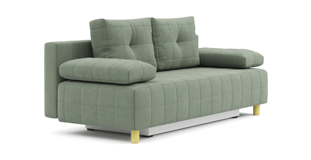 Компактный диван Порту для небольшого помещения – просто находка! Простые формы, приподнятые ножками над полом, скрывают в себе функционал полноценного дивана. Механизм трансформации легко превращает его в удобную кровать для регулярного сна. Ящики для хранения идеально подходят для приспинных подушек и постельных принадлежностей. Добавьте к Порту декоративных подушек – и ваш интерьер заиграет новыми красками.