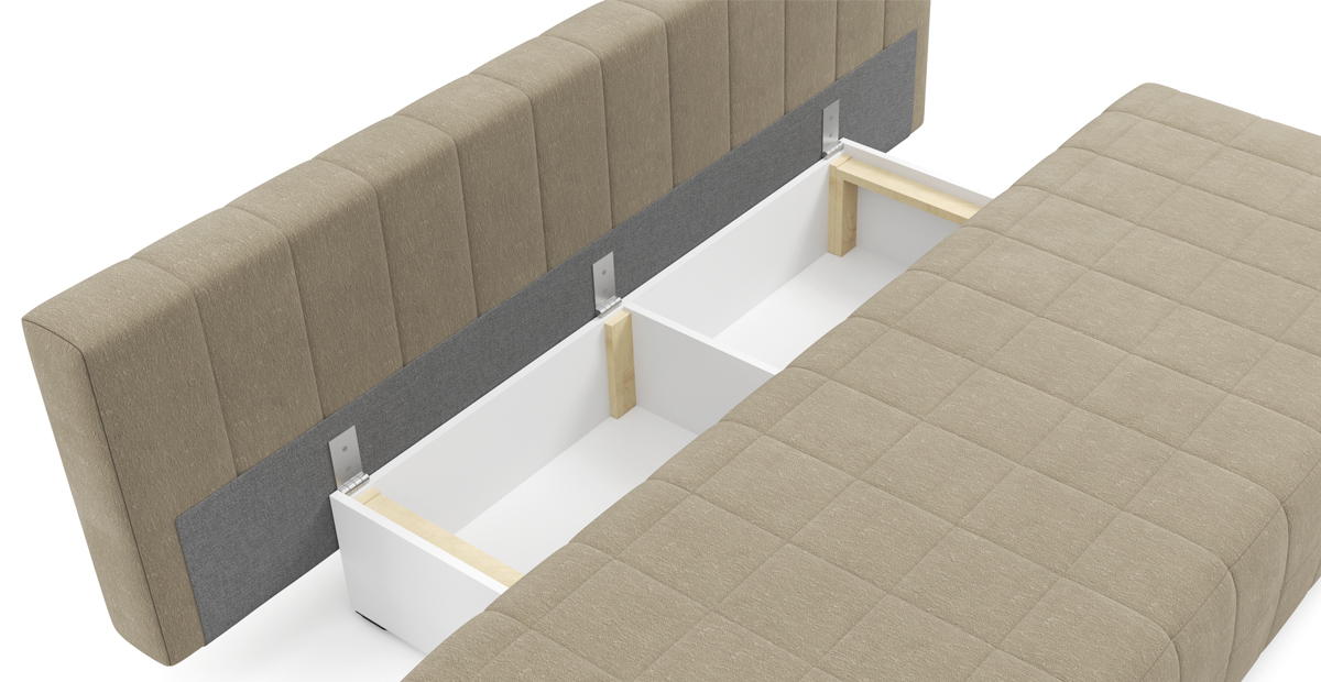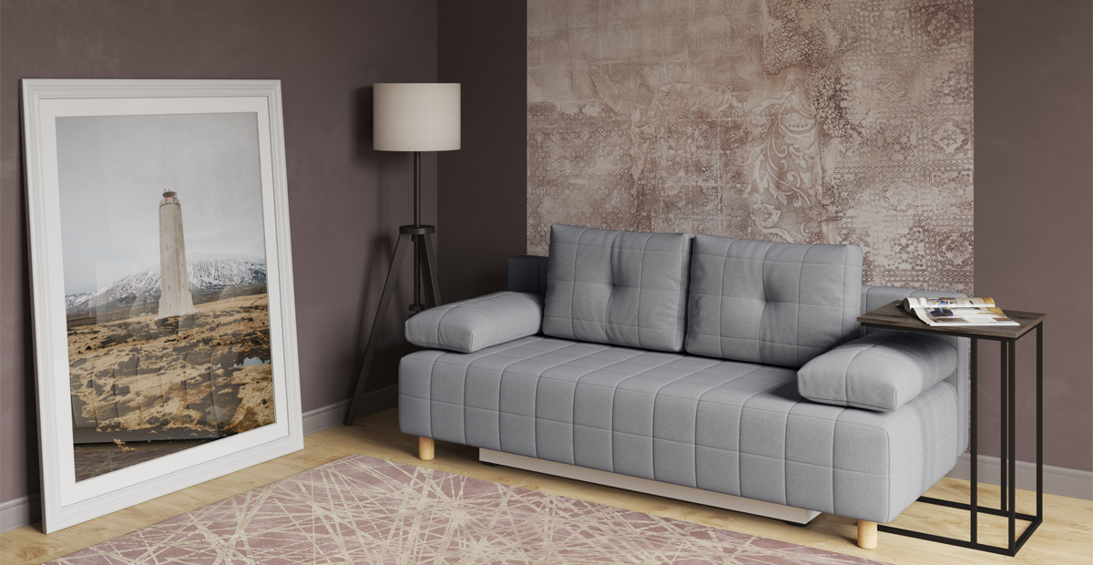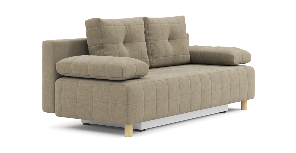 Компактный диван Порту для небольшого помещения – просто находка! Простые формы, приподнятые ножками над полом, скрывают в себе функционал полноценного дивана. Механизм трансформации легко превращает его в удобную кровать для регулярного сна. Ящики для хранения идеально подходят для приспинных подушек и постельных принадлежностей. Добавьте к Порту декоративных подушек – и ваш интерьер заиграет новыми красками.